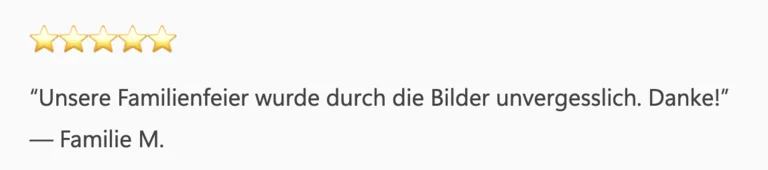Ob kleiner Kreis oder große Feier – ich begleite euch und halte die wichtigsten Momente fest: Freude, Lachen, Umarmungen, Überraschungen und all das, was eure Familie einzigartig macht.